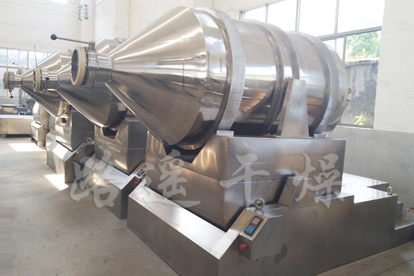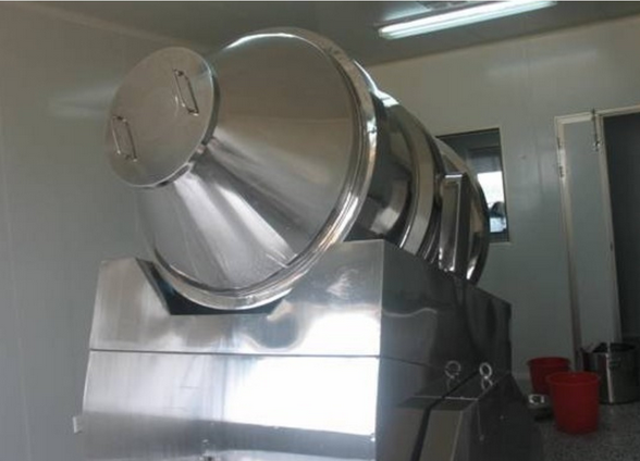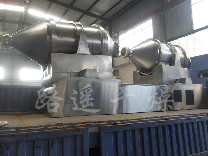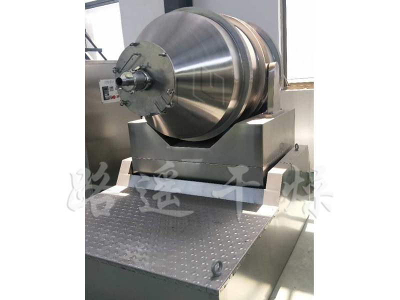 EYH 二維運動混合機的轉筒可同時進行二個運動,一個為轉筒的轉動,另一個為轉筒隨擺動架的擺動。被混合物料在轉筒內隨轉筒轉動、翻轉、混和的同時,又隨轉筒的擺動而發生左右來回的摻混運動,在這兩個運動的共同作用下,物料在短時間內得到充分的混合。EYH二維混料機適合所有粉、粒狀物料的混合。