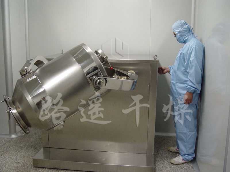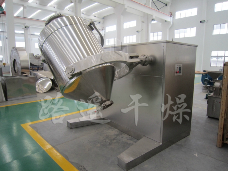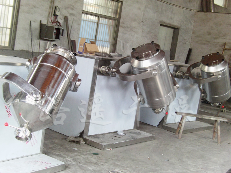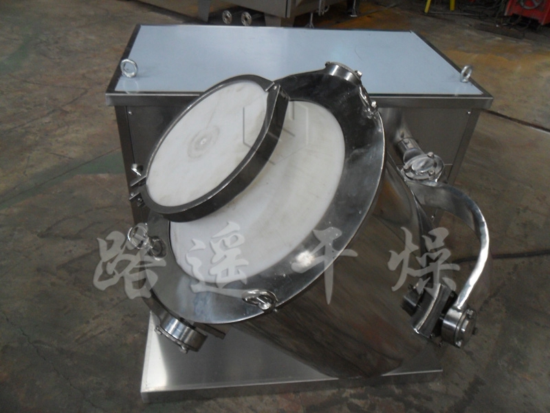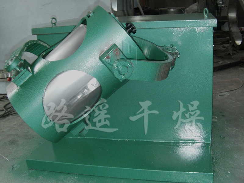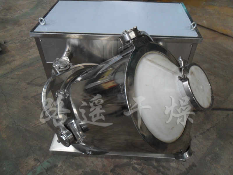 結構:該機由機座、傳動系統、電器控制系統、多向運動機構、混合筒等部件組成。與物料直接接觸的混合筒采用優質不銹鋼材料制造,桶體內外壁均經鏡面拋光。