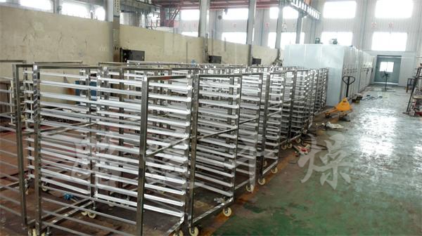 | 技術參數\ 型號規格 | 每次干燥量 (Kg) | 風機功率 (KW) | 耗用蒸汽 (Kg/h) | 烘車 (輛) | 烘盤 (只) | 外形尺寸 L×W×H(mm) | 上下溫差 (℃) |