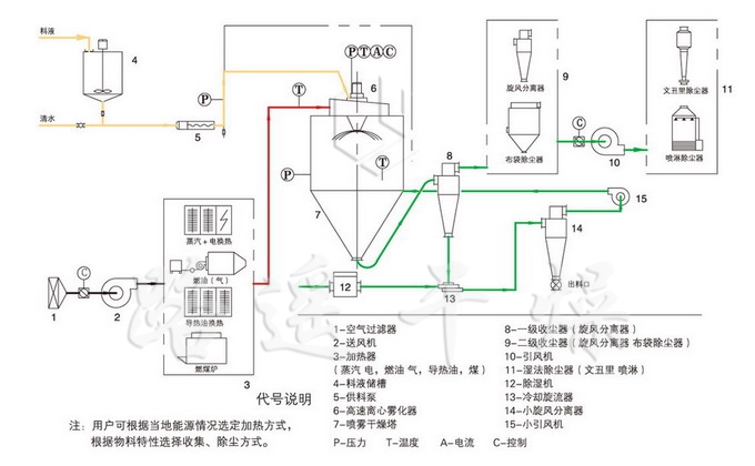 1、熱氣流與霧滴的接觸:有足夠量的熱氣流進(jìn)入噴霧干燥室時(shí),必須考慮熱氣流的方向及角度,無(wú)論是并流、逆流還是混流,確保與霧滴的充分接觸,才能進(jìn)行充分的熱交換。